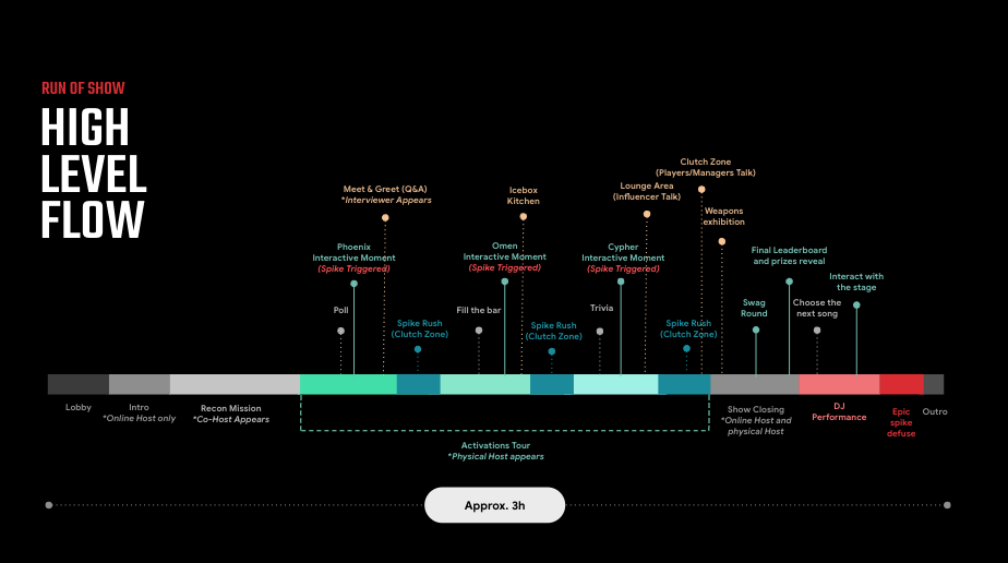 Players used their phones to collectively diffuse ‘the Spike’ along with 3 other interactive agent challenges like Omen’s Maze & Phoenix Flames.